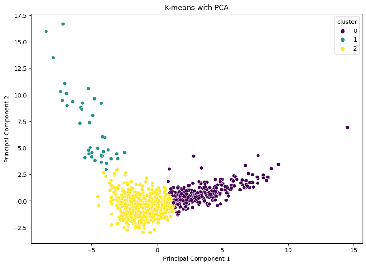 To deal with the multiple features and therefore the multi-dimensionality of the data generated by the various sensors and measurements of the devices, we utilized Principal Component Analysis (PCA) before applying K-Means Clustering. The use of PCA had multiple advantages. Firstly, it reduced the dimensionality of our data, improving the computational efficiency and avoiding multicollinearity. But mainly it was used on a 2-axis scale, to have a good overview of how the different clusters differ and to assess a good separation and interpretation out of it.